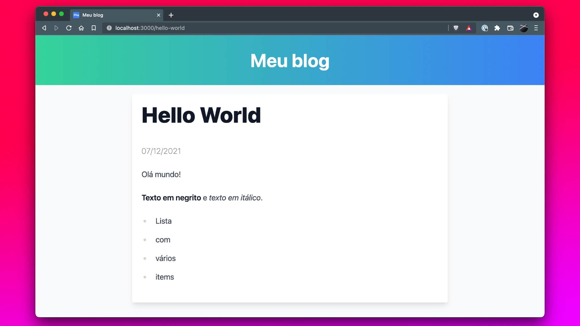 yarn add react-markdown gray-matter @tailwindcss/typographyposts na raiz do projeto e dentro, crie um arquivo chamado hello-world.md com